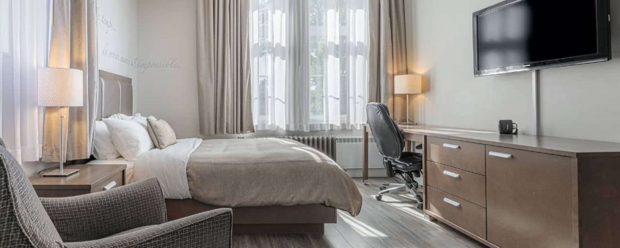 - Chambre Détente avec 1 lit Queen (bain-douche ou douche seulement)