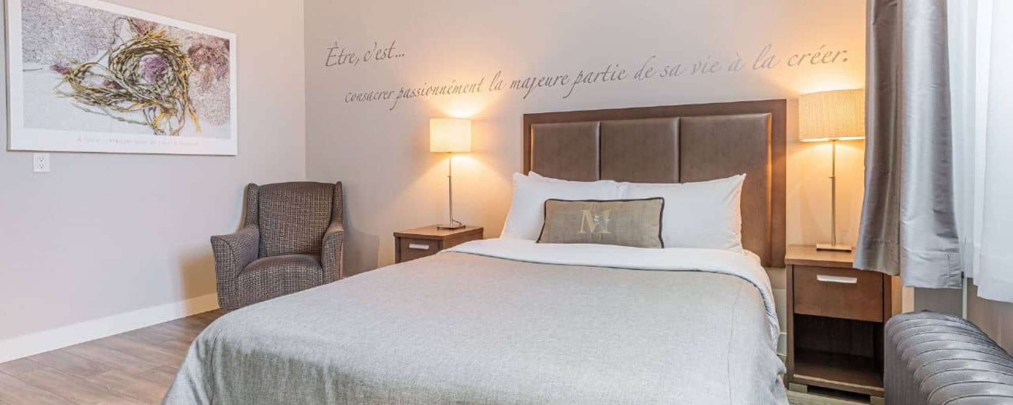 • Chambre avec 1 lit Queen et un bain thérapeutique double