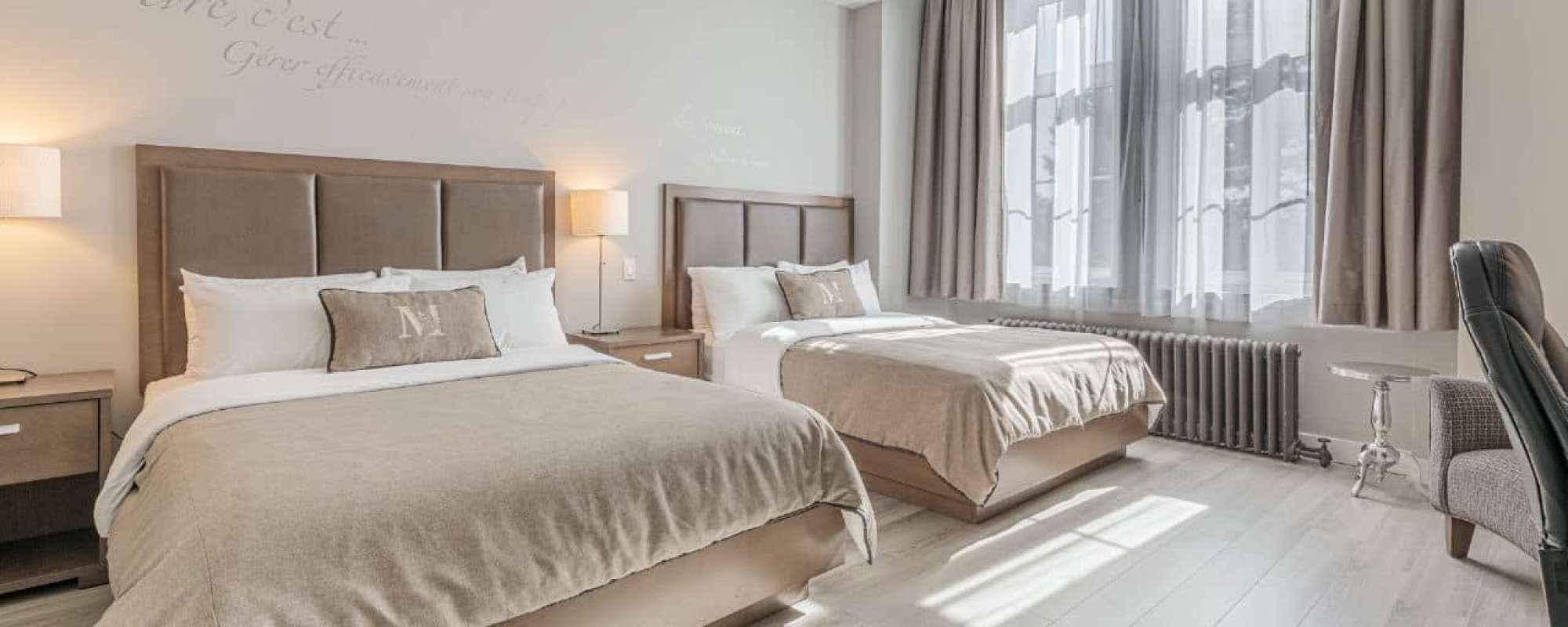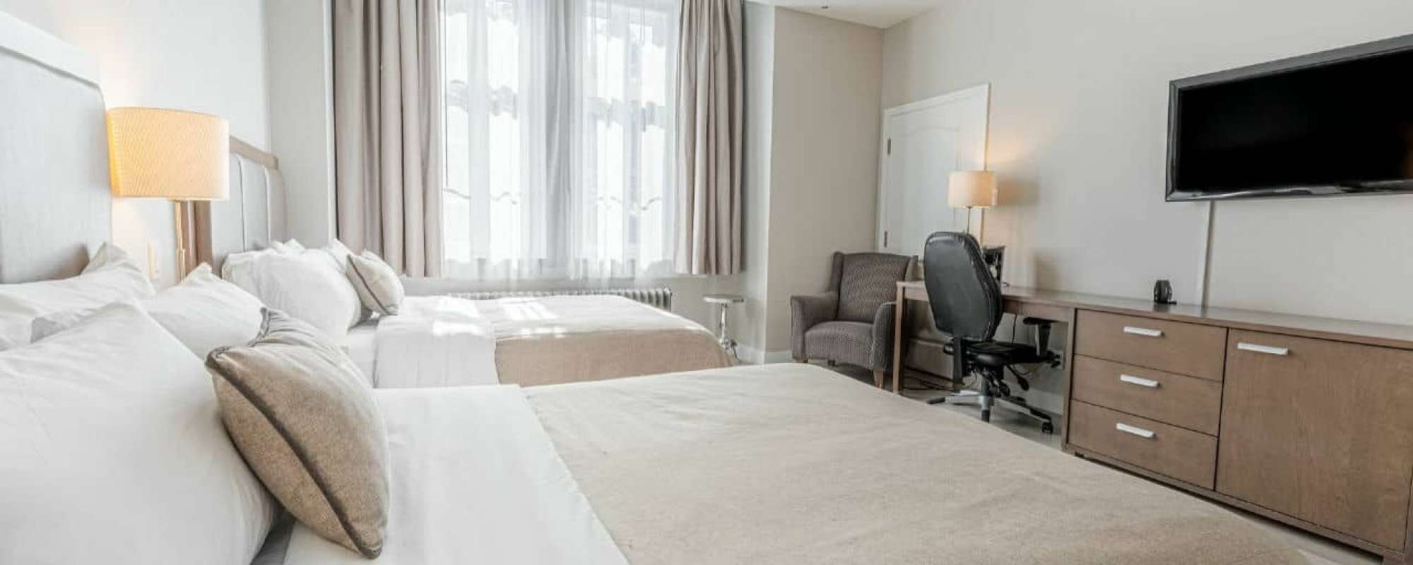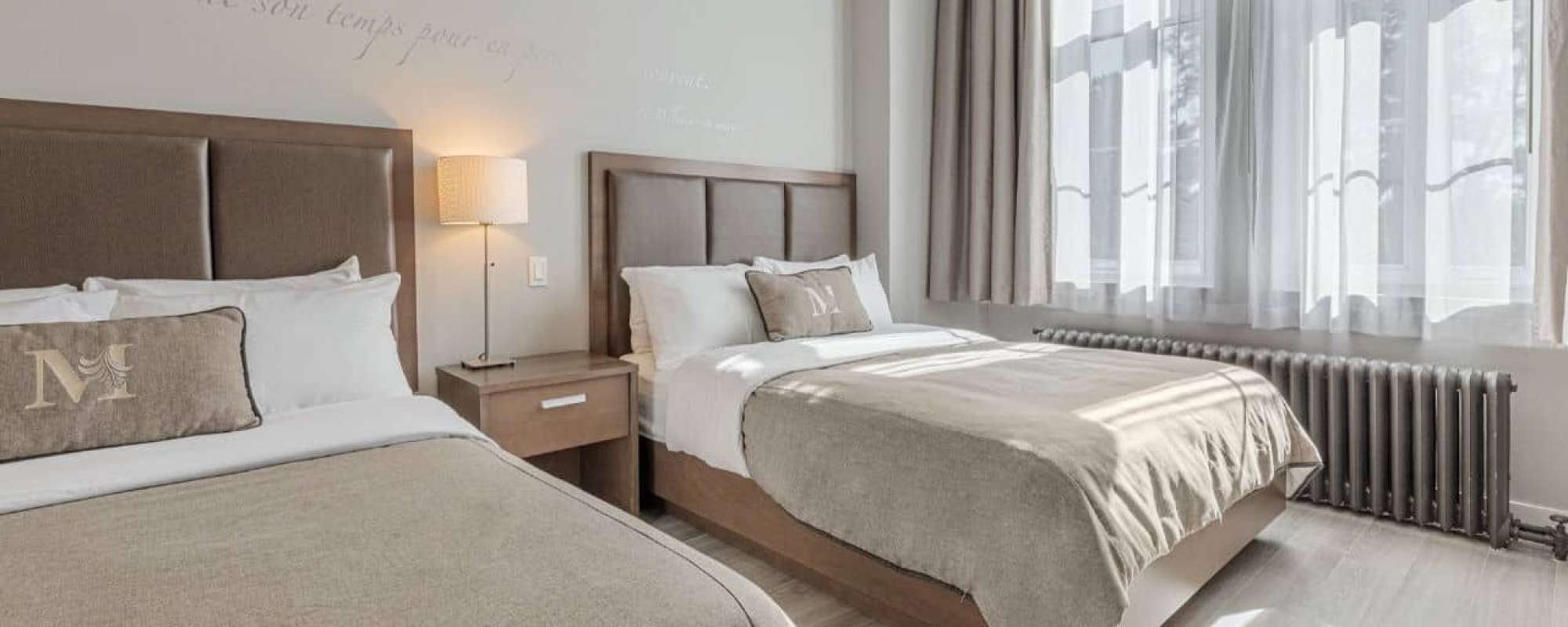 • Chambre avec 2 lits Queen et un bain thérapeutique double